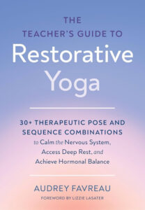 Audrey Favreau’s Therapeutic Restorative Yoga Teacher Training consists of five modules (20–50 hours each), offered online or blended.